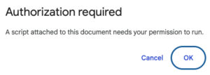 Please note: If this is your first time running this script, it will prompt you for permission to run.  Accept the permissions to continue.