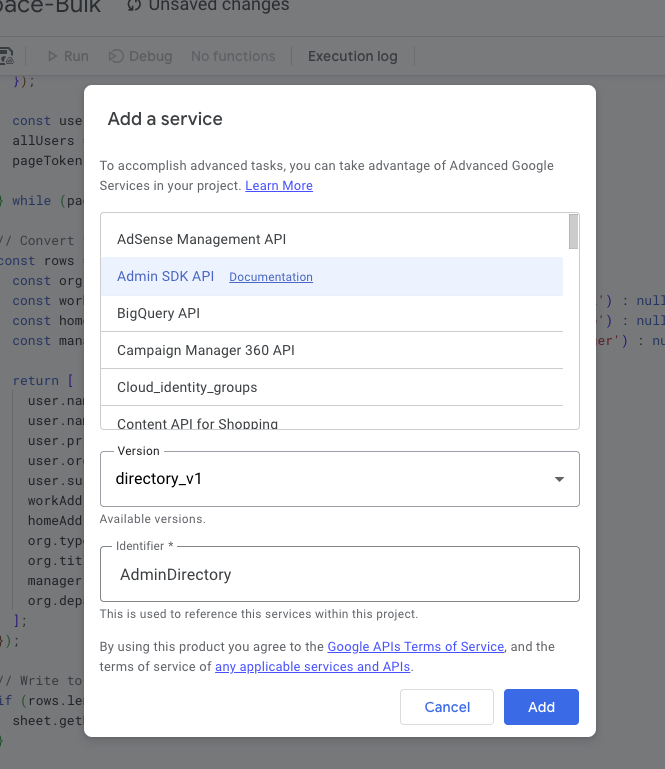 Enable Admin SDK API